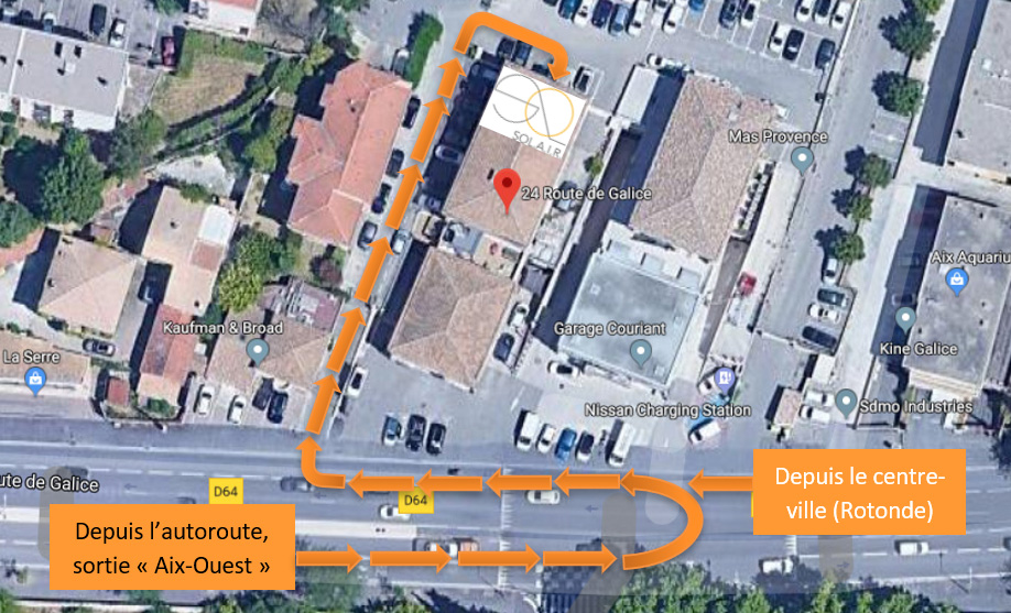 Adresse : 24 route de Galice 13090 Aix en Provence Coordonnées GPS : 43.528956, 5.431193 Tél : 04.42.26.41.17 Courriel : solair@solair-aix.fr